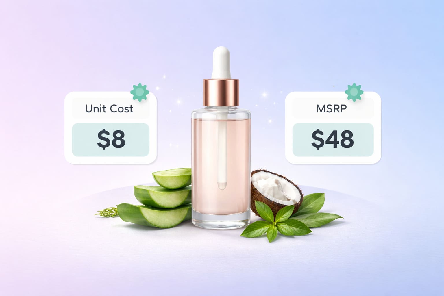 Take a concrete example. A skincare brand manufactures a serum with a unit cost of $8 and an MSRP of $48.