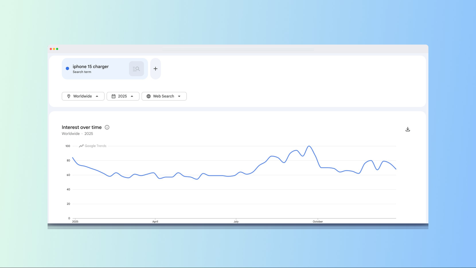Google Trends is most useful not for identifying what's trending now but for understanding the shape of demand over time. A product with steady upward search query growth over 24 months is a more interesting candidate than one with a sharp spike and decline. The steady grower suggests a structural demand shift; the spike suggests a trend cycle you've likely already missed.