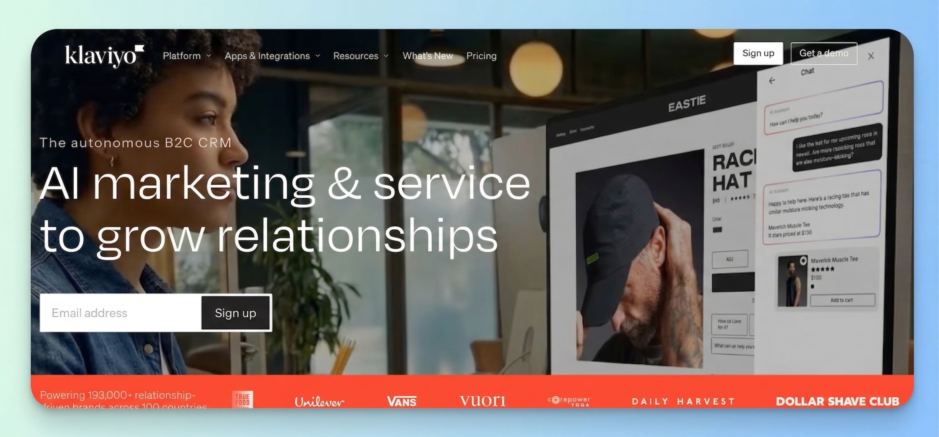 Klaviyo is an email and SMS marketing platform built for ecommerce. Unlike general-purpose email tools, it connects to your store — pulling in real-time data on browsing behavior, purchases, and abandoned carts — and uses that data to personalize campaigns and trigger automated flows. The practical result is that your emails reflect what customers actually did on your site, not just demographic assumptions.