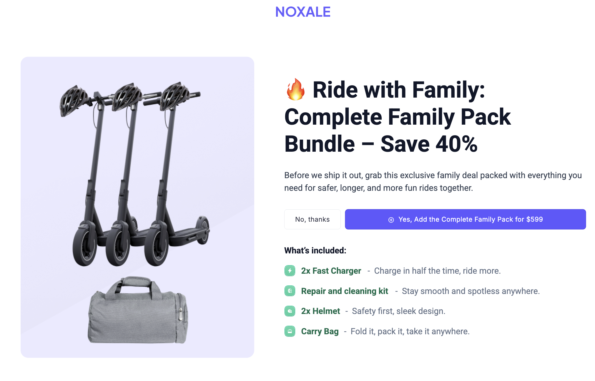 Upsell: The checkout flow utilizes one-click upsells for lower-friction items like specialized cleaning sprays or knife sets, which complement the main purchase without requiring a second decision process.