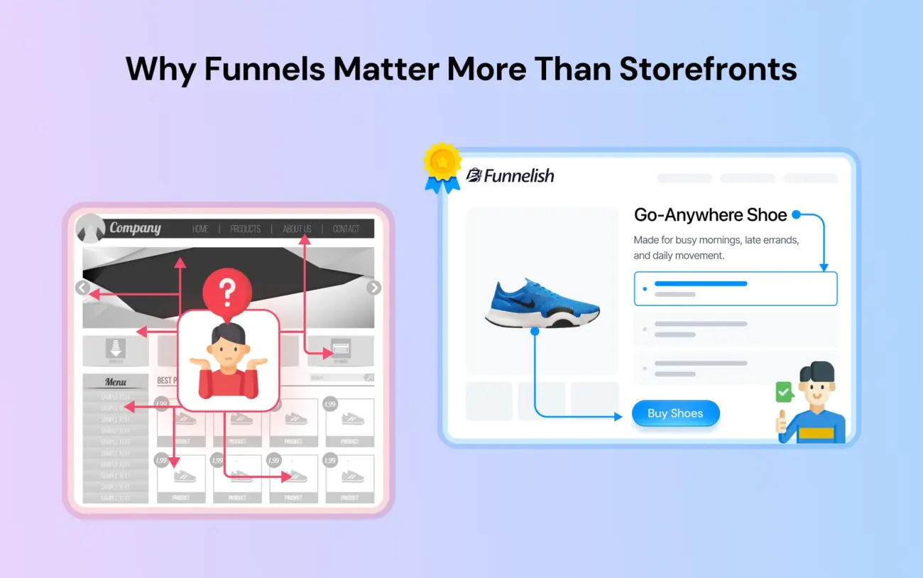 Most successful eCommerce brands use both, but for different objectives. Websites are optimized for discovery and organic traffic, while funnels are optimized for conversion and paid traffic.