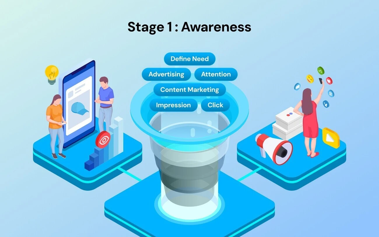 The awareness stage is the widest part of the funnel. Here, prospective customers realize they have a problem or a desire. They are not looking for your brand yet; they are looking for answers to their symptoms.