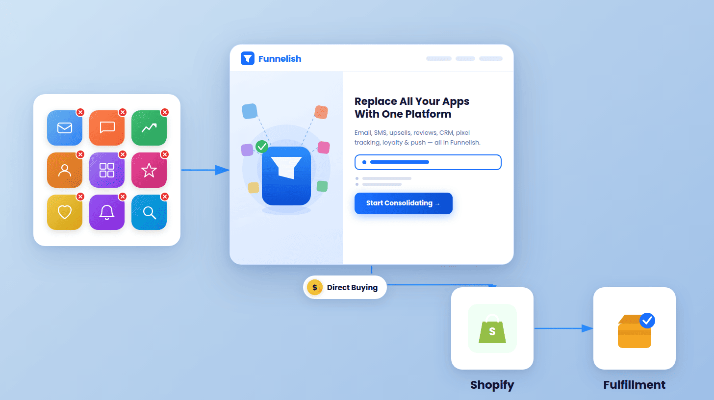 Funnelish syncs with Shopify rather than replacing it, which is the model most high-volume eCommerce merchants are moving toward: Shopify as the operational backbone, a dedicated funnel platform as the customer-facing revenue layer that converts site visitors, drives sales, and builds loyal customers without the app stack overhead.