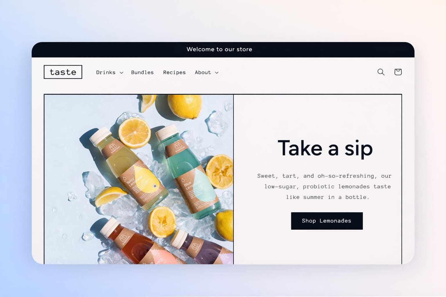 Taste is built for stores where the product itself needs to do the talking — bold headlines, industrial fonts, high-contrast palette. Product sections support larger cards and bespoke FAQs, which helps buyers make informed decisions on considered purchases. One merchant noted mobile image scaling issues with product description images — worth testing on your catalog before launching.