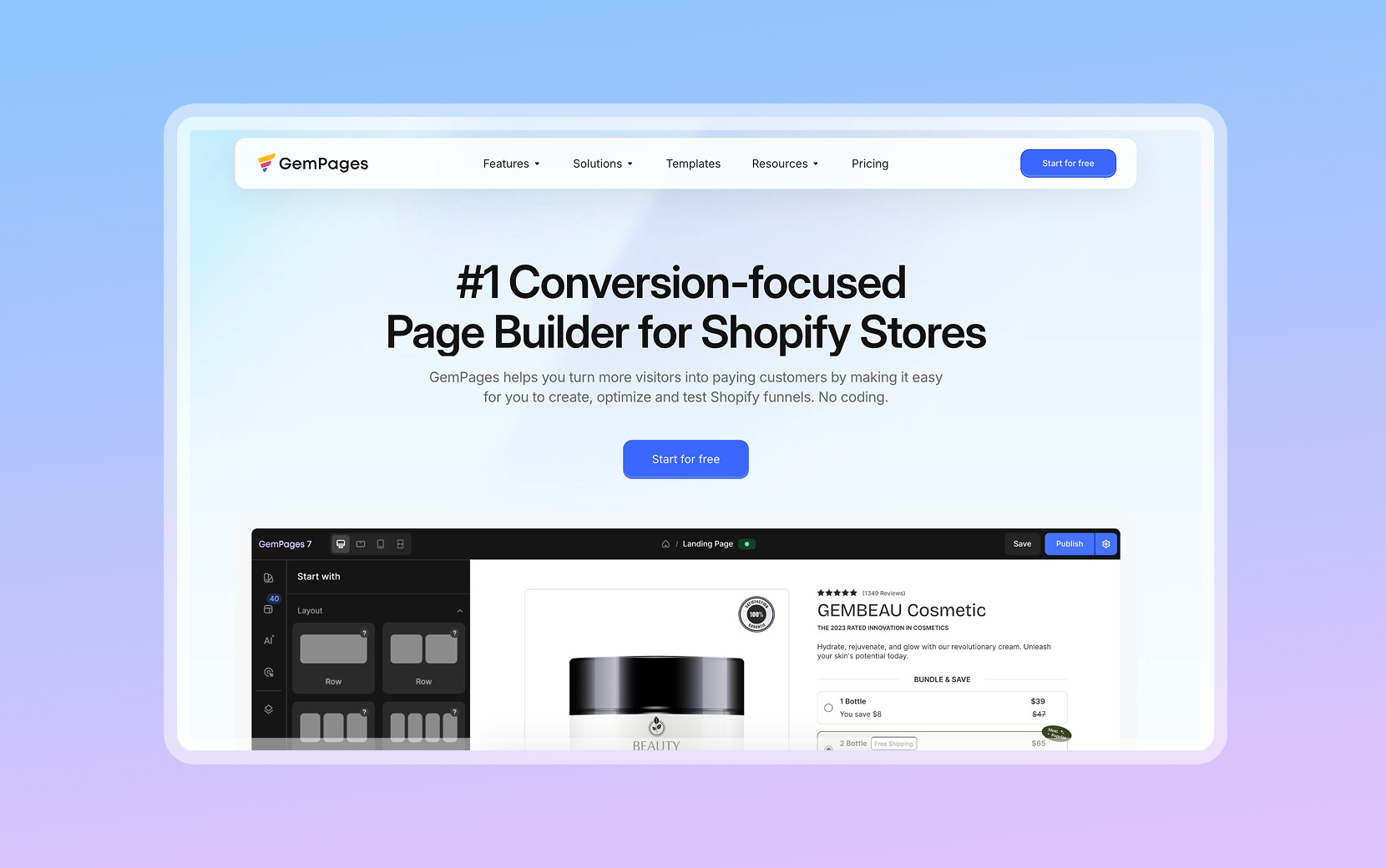 GemPages is a solid entry-level option. Better than the standard Shopify editor, but lacking advanced revenue maximization features like native split testing and robust checkout control found in top-tier alternatives.