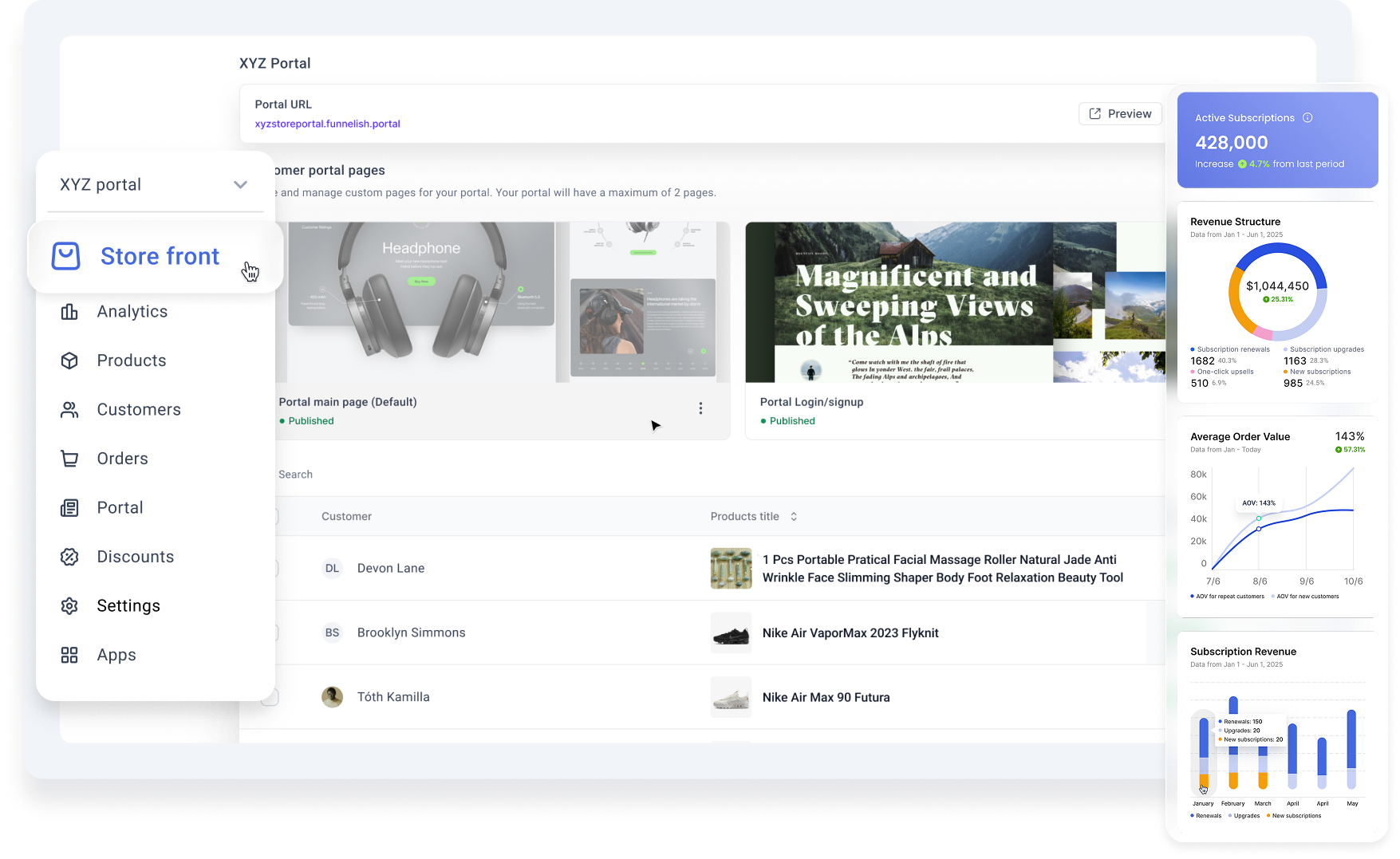 No more support floods: customers manage products, subscriptions, and billing themselves.